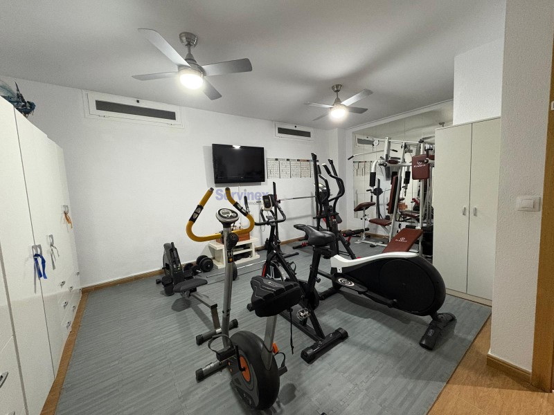 Cochera, gimnasio y baño en planta baja.