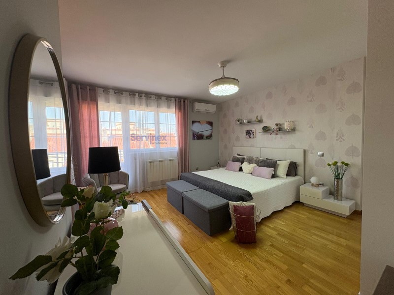 Tres dormitorios y dos baños en la segunda planta, incluyendo el principal con vestidor, baño en suite y terraza privada.